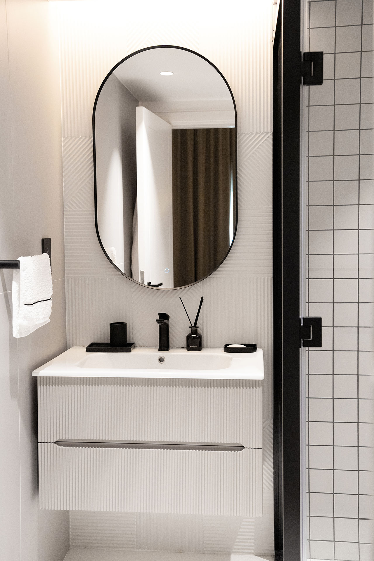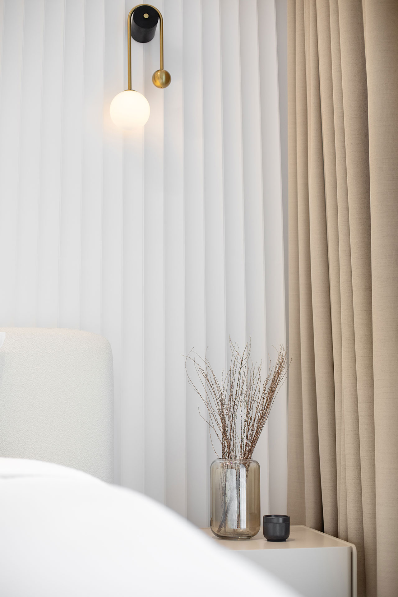 This bedroom for a teenage girl features a fresh and calming color palette and unique wall coverings. Our team handled everything from design to completion. The result is a peaceful and tranquil space that is practical, timeless, and relaxing.